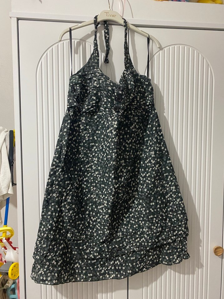 Yeşil Askılı Mini Rahat Elbise