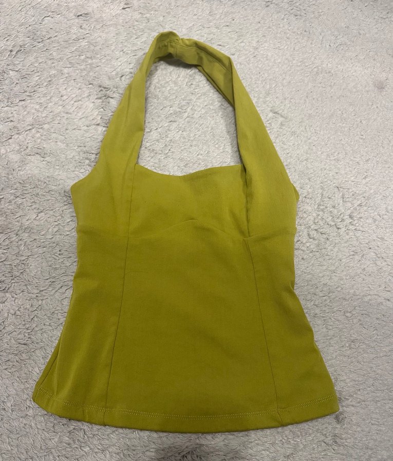 Yeşil renkli, askısız ve parlak görünümlü kadın atlet, sentetik kumaştan üretilmiş, vücuda oturan kesime ve normal midi boyda rahat bir tasarıma sahiptir.