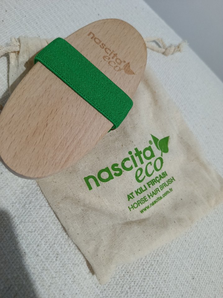 Ahşap tabanlı, yeşil bantlı at kılı saç fırçası. Nascita Eco marka, doğal kumaş torba ile birlikte gelir. ölü derilerin temizlenmesine, kan dolaşımının desteklenmesine ve cildin daha pürüzsüz bir görünüme kavuşmasına yardımcı olur. Doğal yapısı sayesinde hassas ciltlerde de kullanılabilir. sıfır uruntur kese çanta ile gönderilecektir