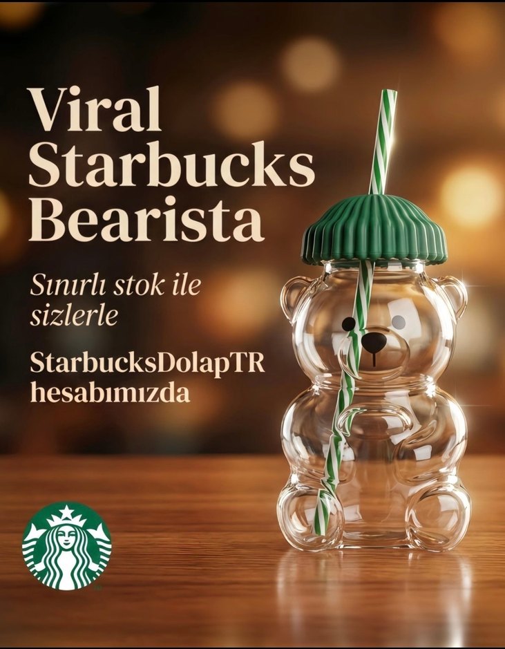 Yeşil kapak ve pipetli, Starbucks Bearista temalı renkli ayıcık bardak. Sınırlı stok. Birebiri yazısız ve etiketsiz hali