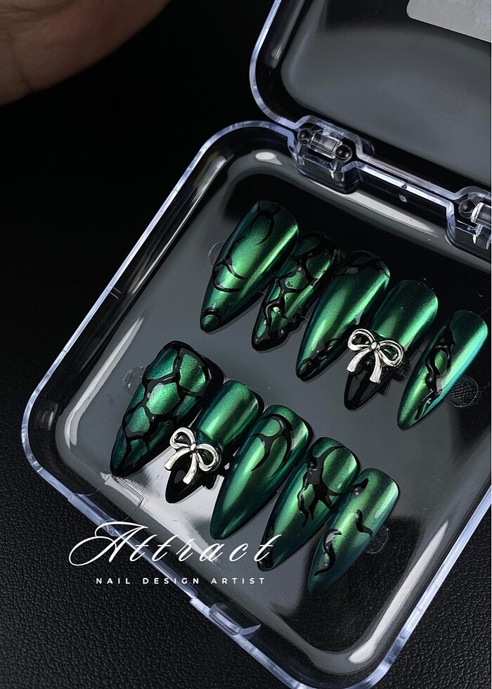 Yeşil ayna toz ~ jel takma tırnak seti