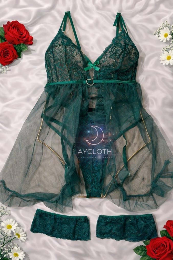 YEŞİL BABYDOLL TAKIM Paket İçeriği ; Babydoll - Kemer - Bacaklıklar Bedenler ; S/M - L/XL Not ; Baleni ve desteği mevcut değildir. İç giyim ürünlerinde iade ve değişim yoktur.