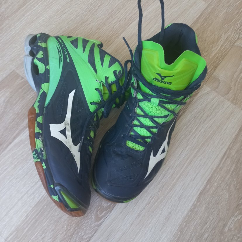Yeşil ve siyah renklerde, bağcıklı Mizuno basketbol ayakkabısı. Spor ve athleisure tarzına uygun, kauçuk tabanlı, desensiz ve renkli. Orijinal Mizuno profesyonel sadece sahada kullanıldı. Az kullanılmış, sol tekinde tabana yakın küçük bir çatlak var, fotoğrafını yükledim. Başka kusuru yok.