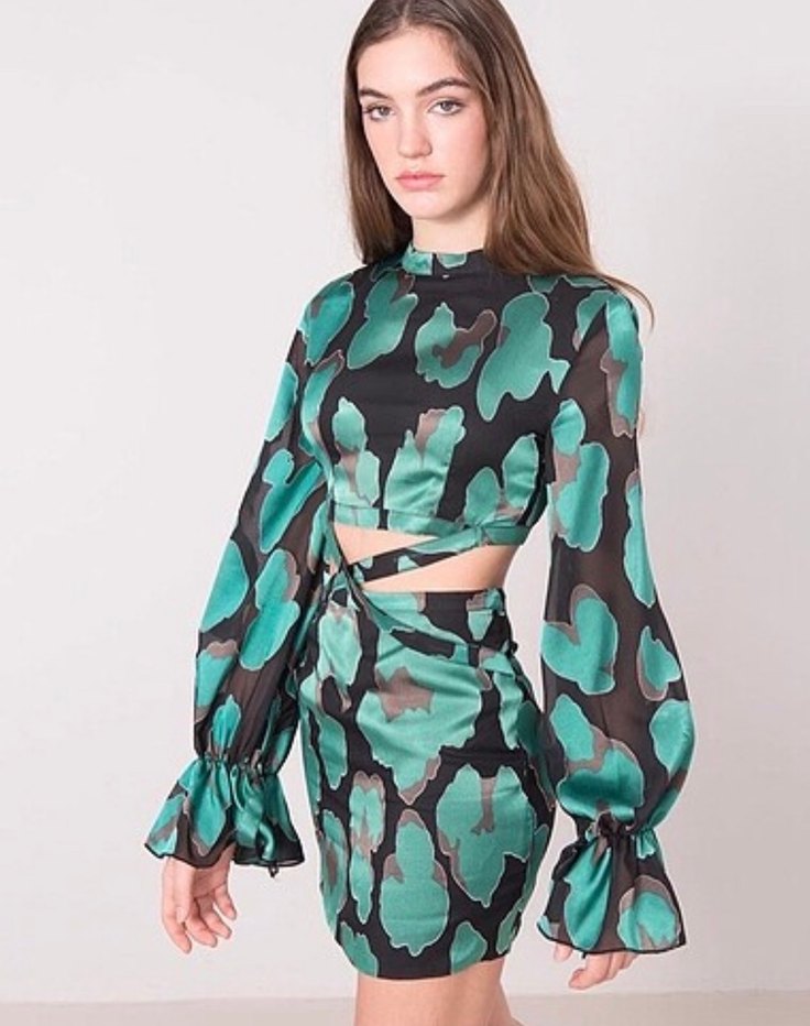 Yeşil Bağcıklı Uzun Kollu Mini elbise
