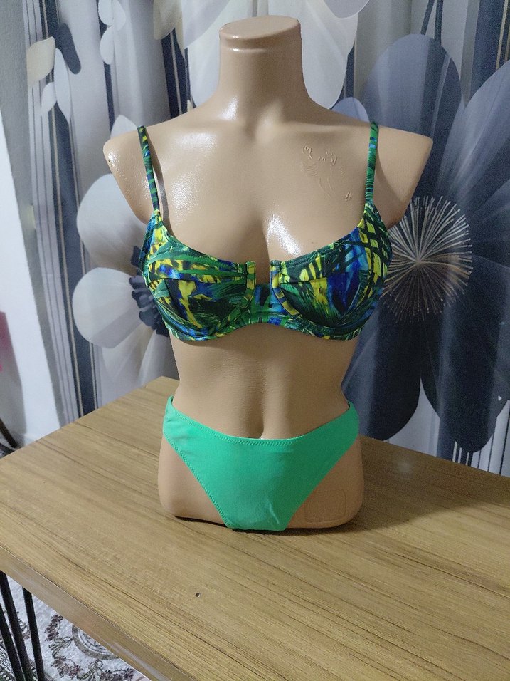 Yeşil Bağlama Desenli Mini Bikini