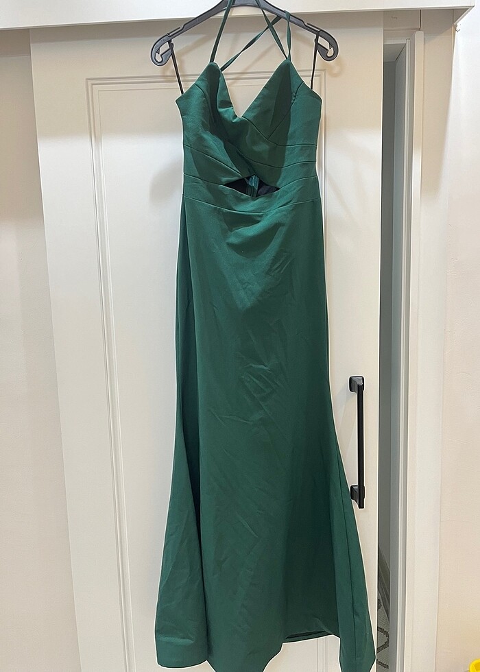 Ön pencere detaylı boyundan bağlamalı sırtı açık balık elbise