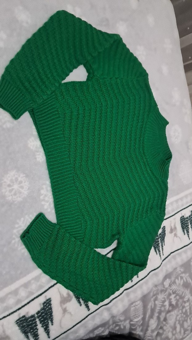 Yeşil renkli, balıkçı yaka ve uzun kollu, örgü kadın kazak. Parlak dokusu ve sade, rahat tasarımıyla günlük kullanıma uygundur.