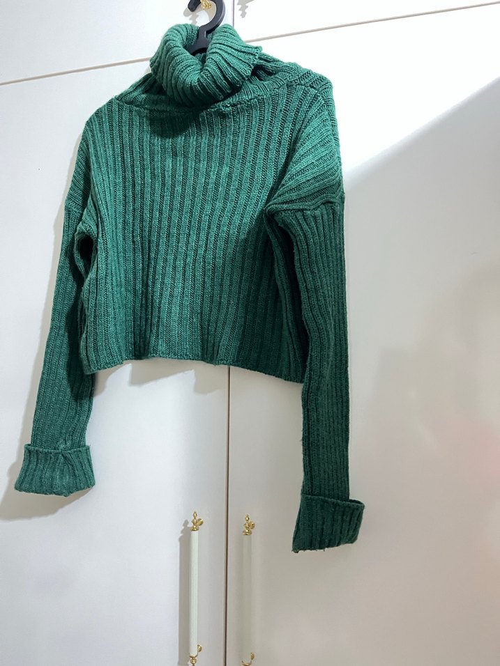Yeşil Balıkçı Yaka Triko Kadın Kazak