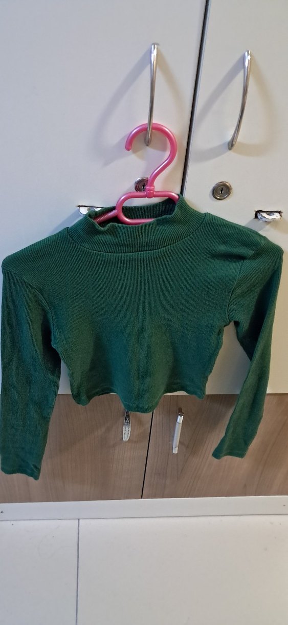 Fitted kesim, koyu yeşil renkli, balıkçı yaka ve uzun kollu örme kadın kazak. Orta boy ve desen içermeyen rahat bir tasarıma sahiptir.