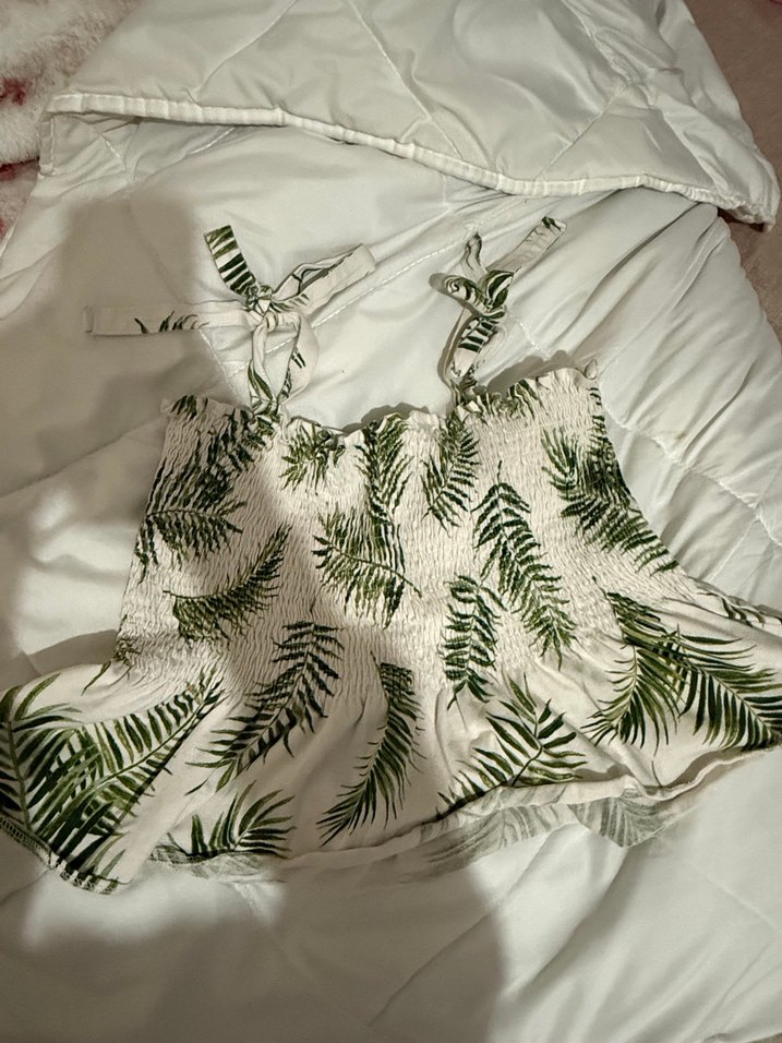 Yeşil Baskılı Askılı Bluz