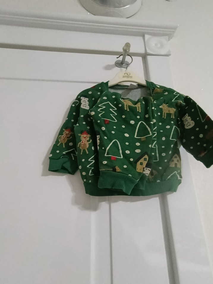 Yeşil renkli, uzun kollu, bisiklet yakalı erkek çocuk sweatshirtü. Yumuşak ve sıcak dokuda örme kumaştan, bol kesim. Renkli baskılı orman ve hayvan desenleriyle bohem, retro tarz.