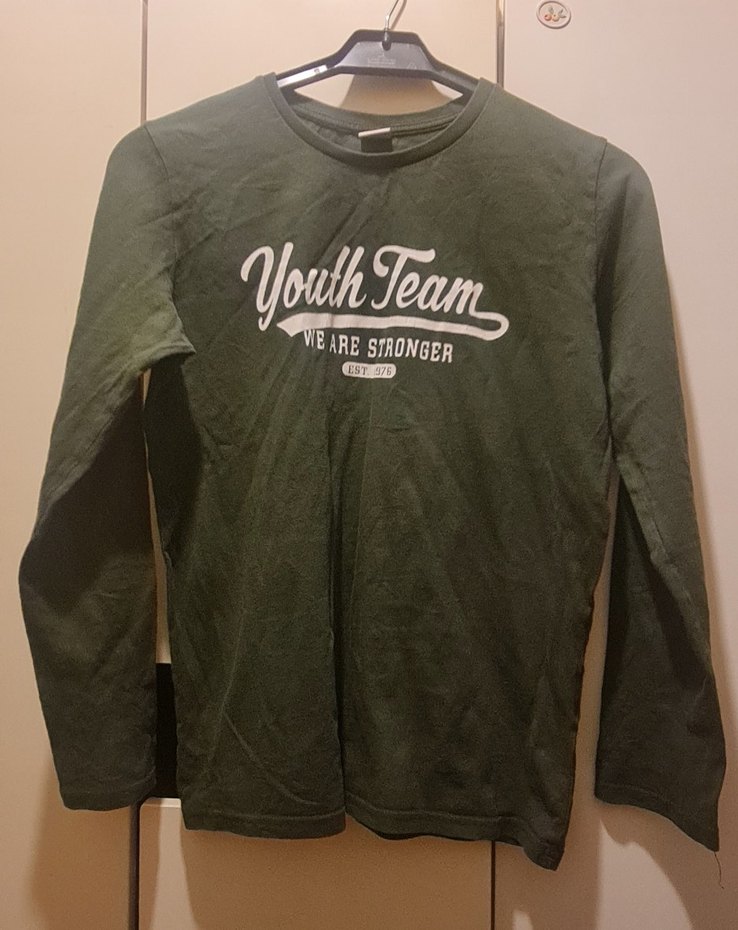 Linen kumaştan, uzun kollu ve bisiklet yaka olan bu koyu yeşil baskılı erkek çocuk sweatshirtü, rahat ve şık bir sokak stili sunar. erkek çocuk sweetshirt iki kol altı arası tek yön 45cm boy 58cm defo yıpranma yok sağlam ürün, hakiye yakın koyu yeşil rengi çok güzel