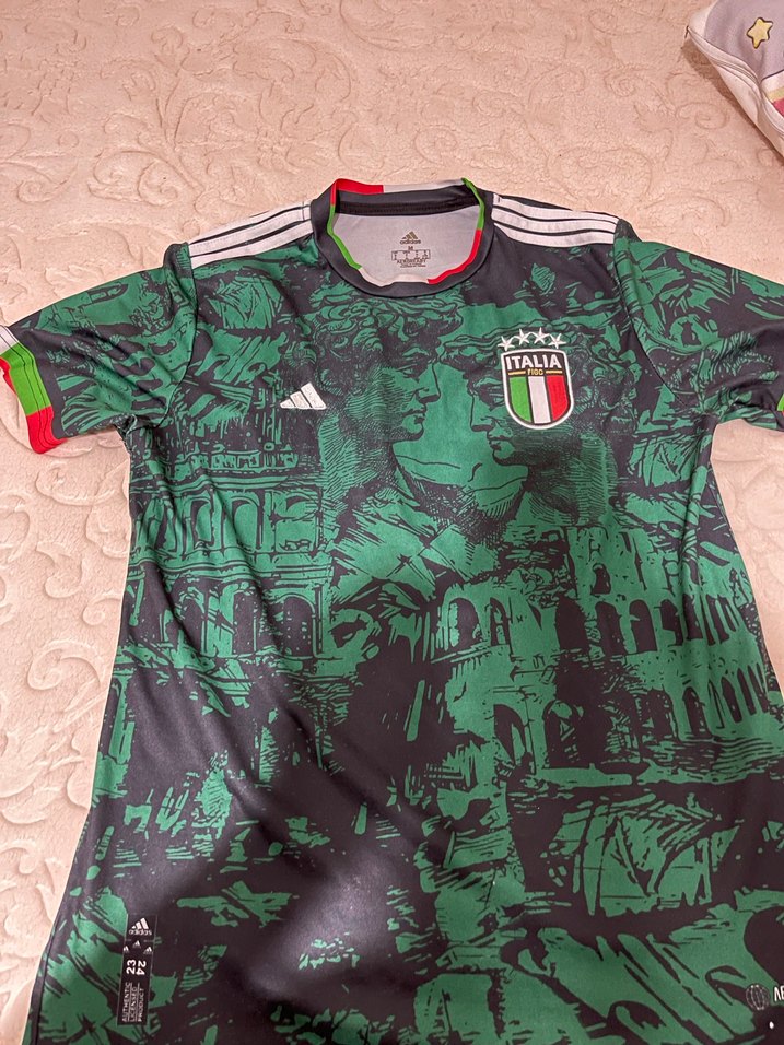 Sentetik kumaştan, kısa kollu ve bisiklet yaka, İtalya temalı baskılı yeşil renkli, sokak modasına uygun erkek atlet. Günlük kullanıma uygundur. ️