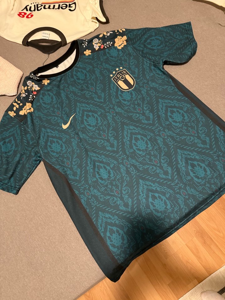 Yeşil baskılı, kısa kollu, triko kumaştan erkek tişörtü. Dar kesim, yuvarlak yaka ve sokak modası tarzında, günlük kullanıma uygun.