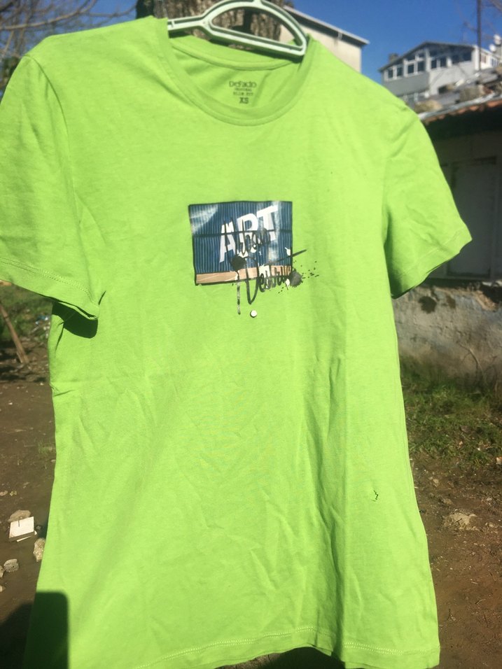 Yeşil renkli erkek tişört, önünde baskılı desen bulunur. Kısa kollu, bisiklet yaka ve pamuktan üretilmiş bol kesimdir, dış mekan kullanımı için uygundur.