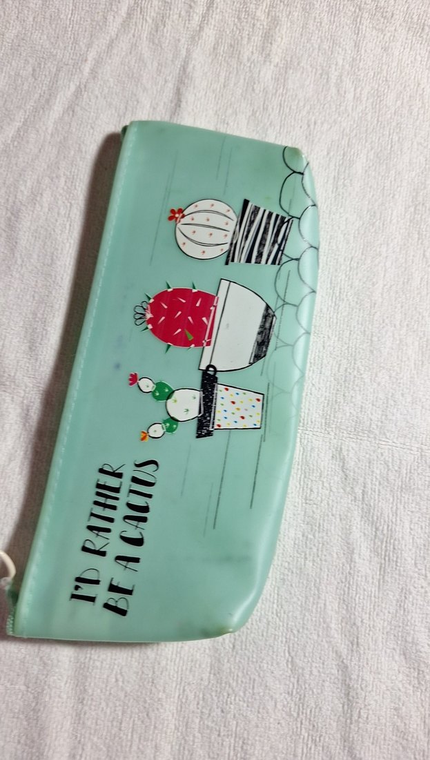 Yeşil renkte, pastel tonlarda baskılı kaktüs desenli, fermuarlı çocuk kalemlik. Bohem ve retro tarzı yansıtıyor.
