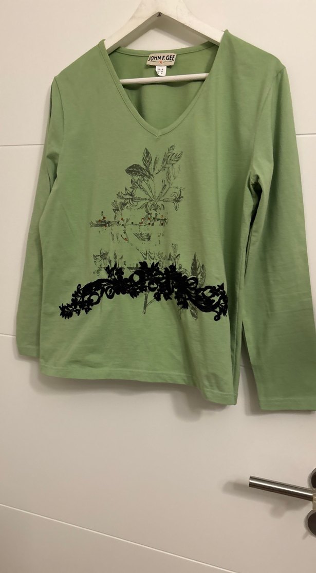 Yeşil, baskılı çiçek desenli, uzun kollu hamile tişörtü, yuvarlak yaka ve bol kesim, yumuşak pamuk kumaştan üretilmiştir. Rahat günlük kullanım için uygundur.