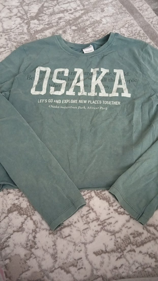 Yeşil renkli, baskılı, uzun kollu ve bol kesim kadın sweatshirtü. Crew neck yakaya sahip, rahat sokak stili sunar. göbek üstü belde