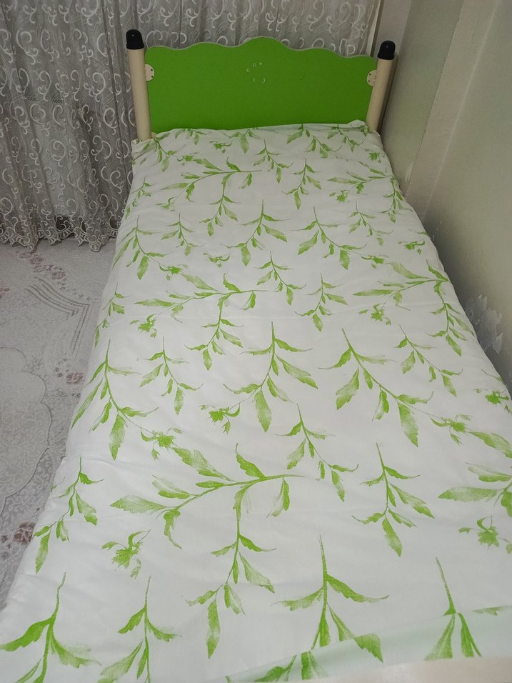Hiç kullanılmadı.Bu nevresim, beyaz zemin üzerinde pastel yeşil yaprak baskılı desene sahiptir ve yatak odanıza yumuşak ve ferah bir görünüm sunar.