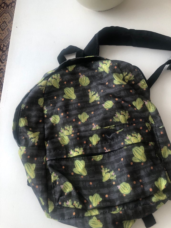 Siyah üstüne yeşil desenli baskılı okul sırt çantası