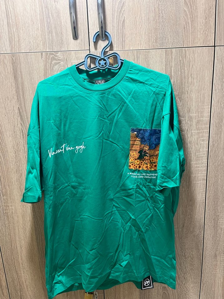 Yeşil renkte, baskılı ve oversize kesime sahip erkek tişört. Kısa kollu, yuvarlak yaka ve sentetik kumaştan üretilmiştir. Sokak stiline uygun rahat bir parça. Premium Pamuk Kumaş çekme solma yapmaz baskısı silinmez Beden bilgisi ve alım için iletişime geçiniz