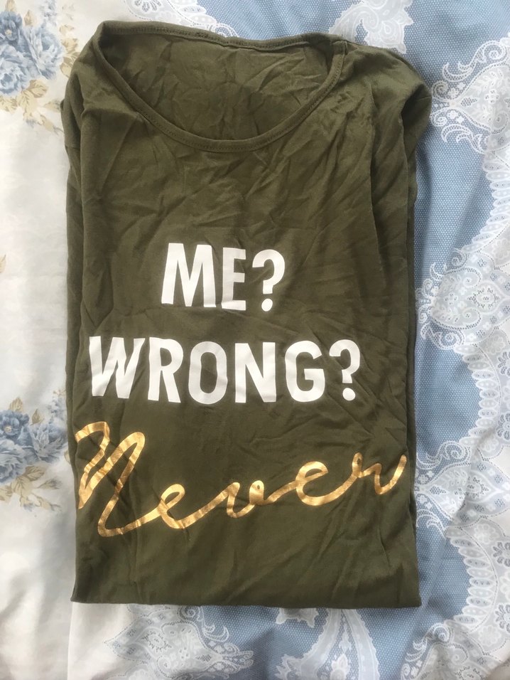 Yeşil renkte, uzun kollu, yuvarlak yaka ve bol kesim tunik ME? WRONG? Never" yazılı parlak baskıya ve dökümlü tasarıma sahip, yumuşak keten kumaştan üretilmiştir. Günlük rahat kullanıma uygun.
