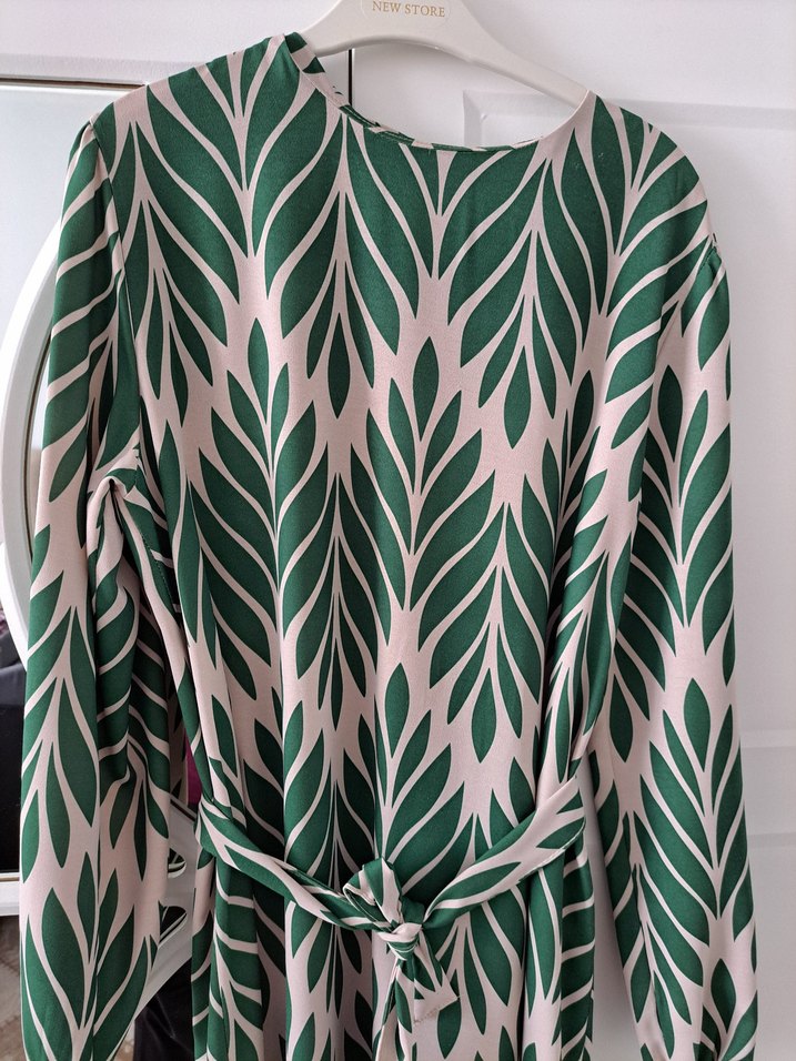 Kadınlar için uzun kollu, bol kesim ve yuvarlak yaka elbisedir. Yeşil-beyaz baskılı, kumaştan yapılmıştır. Günlük kullanıma uygundur.