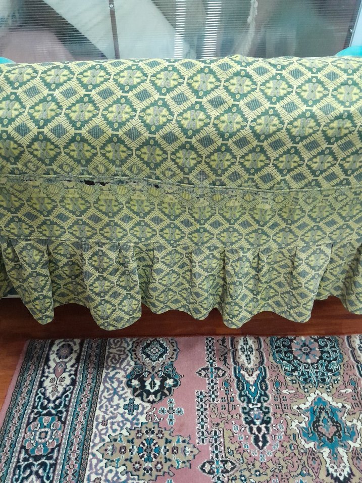 Yeşil renkli, batik desenli somya örtüsü, geometrik detaylarla renkli bir görünüm sunar. ️resimde görüldüğü gibi kusurları vardır. onarılabilir. Başka şekilde değerlendirmek isteyenler de olabilir