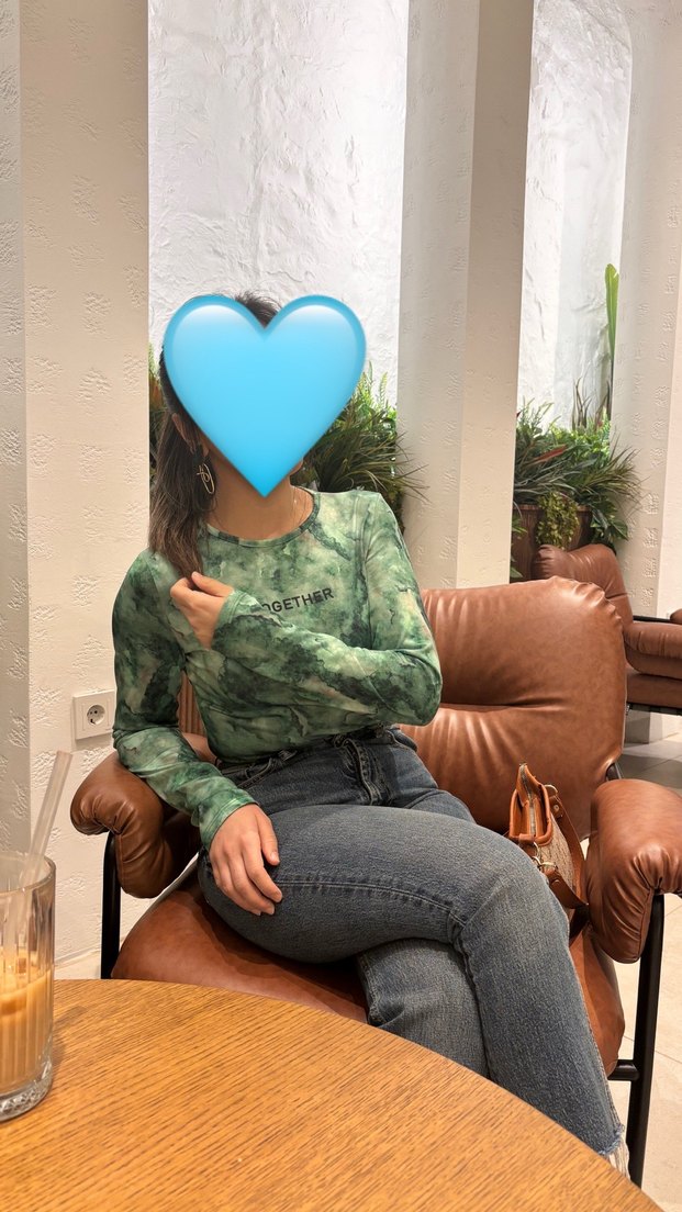Yeşil Batik Desenli Uzun Kollu Denim Bluz