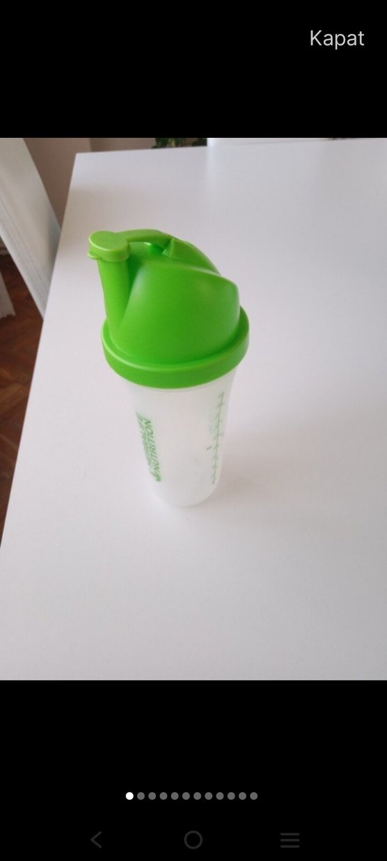 Canlı yeşil kapaklı ve ölçü işaretli şeffaf gövdeli bebek biberonu .
