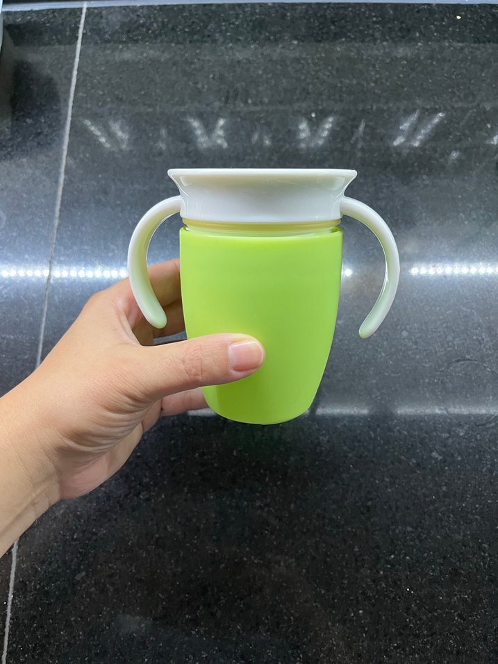 Kolay tutuş için beyaz kulplu yeşil bebek biberonu. Renkli ve kullanışlı tasarıma sahiptir. Bebeğim hiç kullanmadı