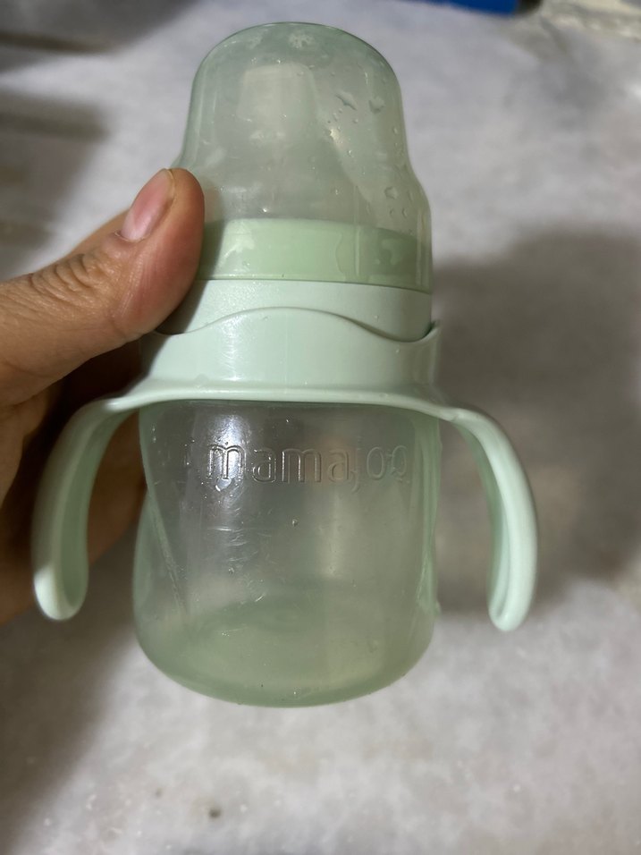 Pastel yeşil renkte, kolay tutuş için kulplu ve koruyucu kapaklı bebek biberonu. Mamajoo marka akıllı bardak suluk . Kulp kısmı cıkarılabılıe ağız kısım gorselı de yukludur 6+ ay üstü kullanabılır