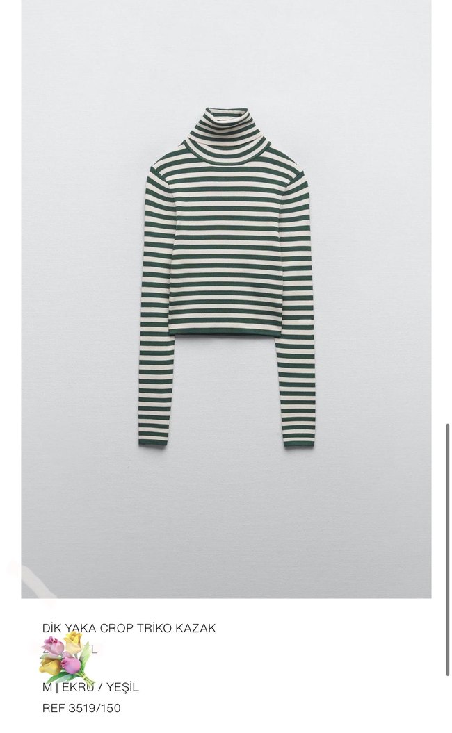 Yeşil beyaz çizgili, boğazlı ve uzun kollu kadın kazak. Sentetik yumuşak kumaştan örülmüş, günlük rahat sokak stiline uygun. Fitted kesim ve midi uzunlukta.