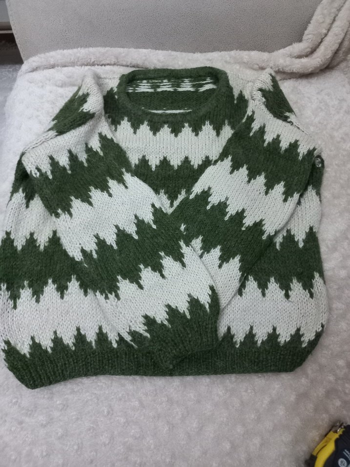 4 5 yaş Yeşil ve beyaz renklerde, uzun kollu ve yuvarlak yakalı örme kazak. Rahat ve bol kesim, günlük kullanıma uygun.