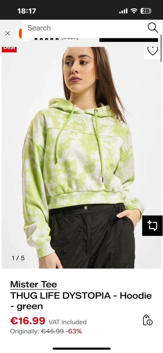 Yumuşak sentetik kumaştan yapılmış, pastel yeşil tie-dye desenli, kapüşonlu ve uzun kollu bol kesim kadın sweatshirtü. Rahat ve günlük kullanıma uygun. Chug life yabancı markalıdır normal fiyatı sitesinde 16 Euro