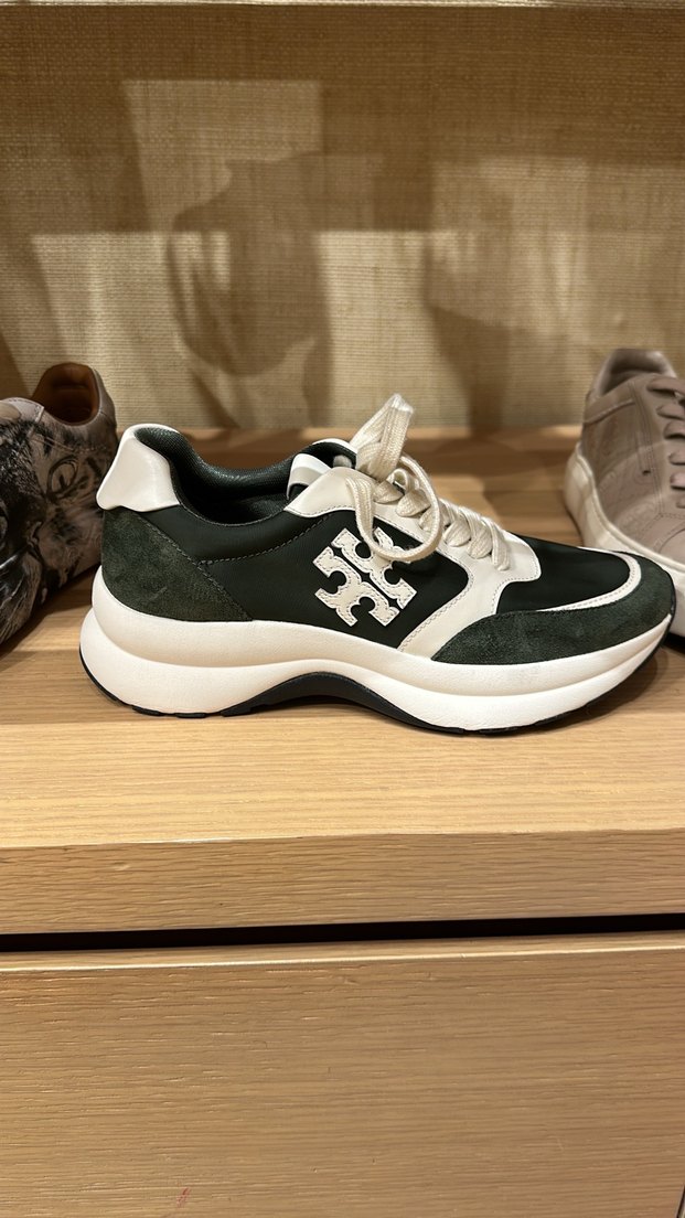 Tory burch 37 numara koyu Yeşil ve beyaz renklerde, baskılı detaylı, bağcıklı, kauçuk malzemeden platform topuklu kadın spor ayakkabısıdır. Trendy casual ve sokak stili için uygundur. Yeni ve etiketlidir, kendi mağazasından alınmıştır, faturası mevcuttur.