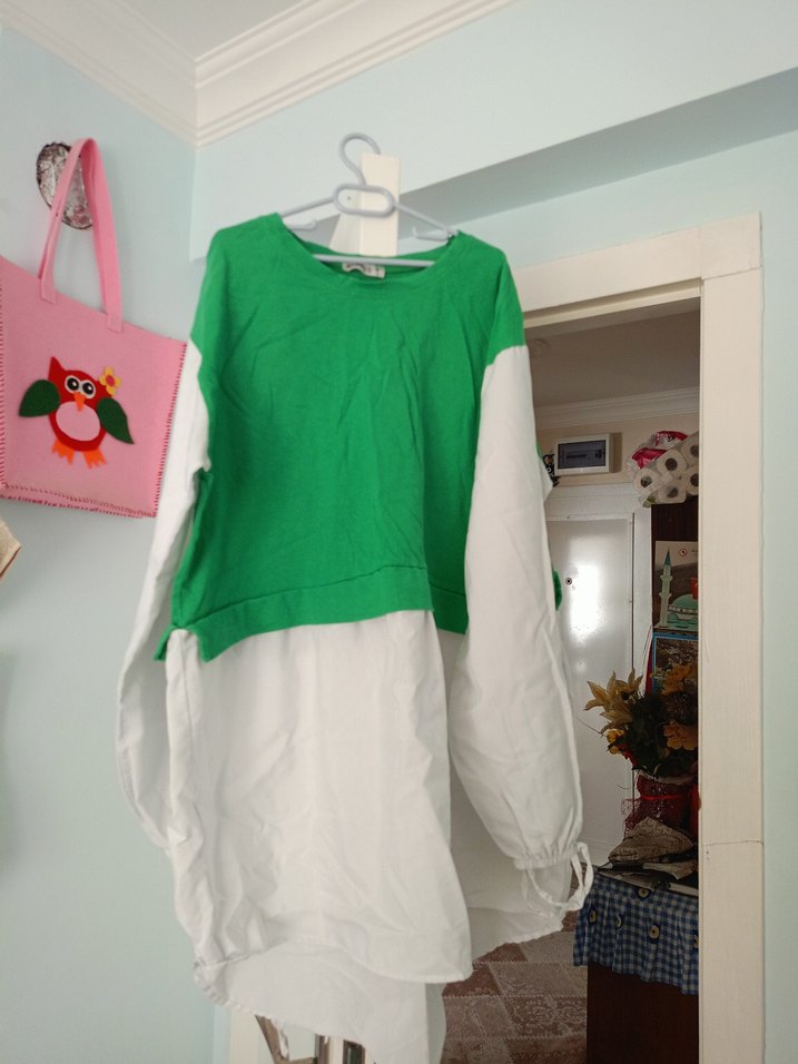 Yeşil-Beyaz Uzun Kollu Salaş Tunik