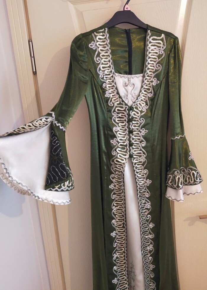 Bir kez ev icindeki kinada kullanıldı. Temiz bindallı. Bedeni yazmiyor fakat 36-38 beden uyumlu ben 1.72 boy, 54 kiloda giydim. Alacak olan güle güle giysin.