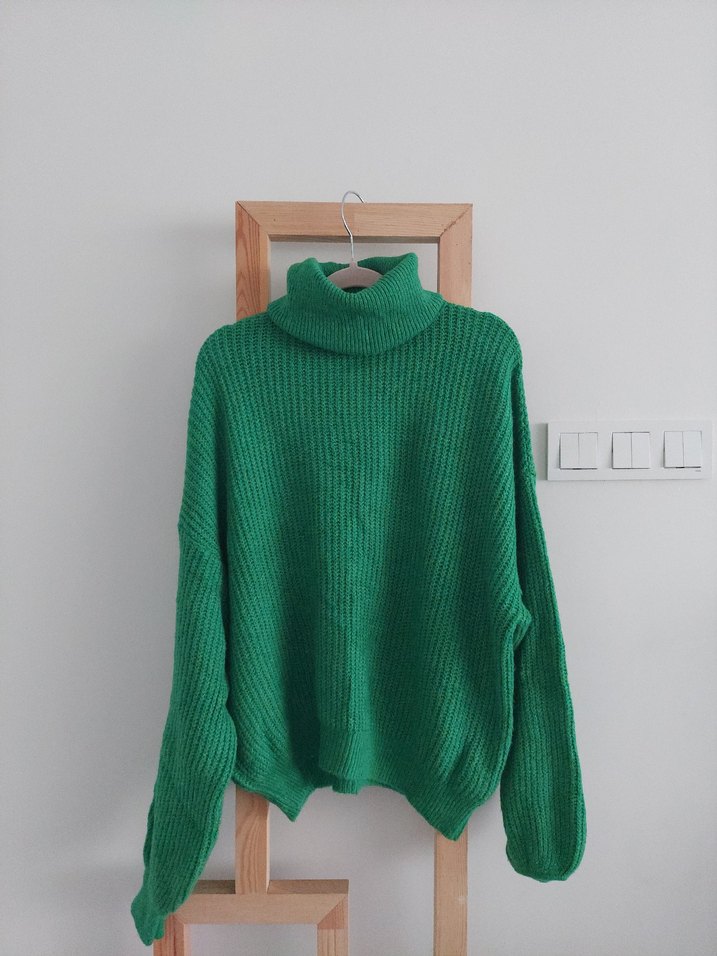 Yeşil Boğazlı Örgü Kadın Kazak