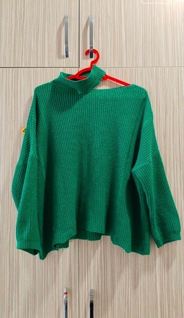 Yeşil Boğazlı Örgü Kadın Kazak