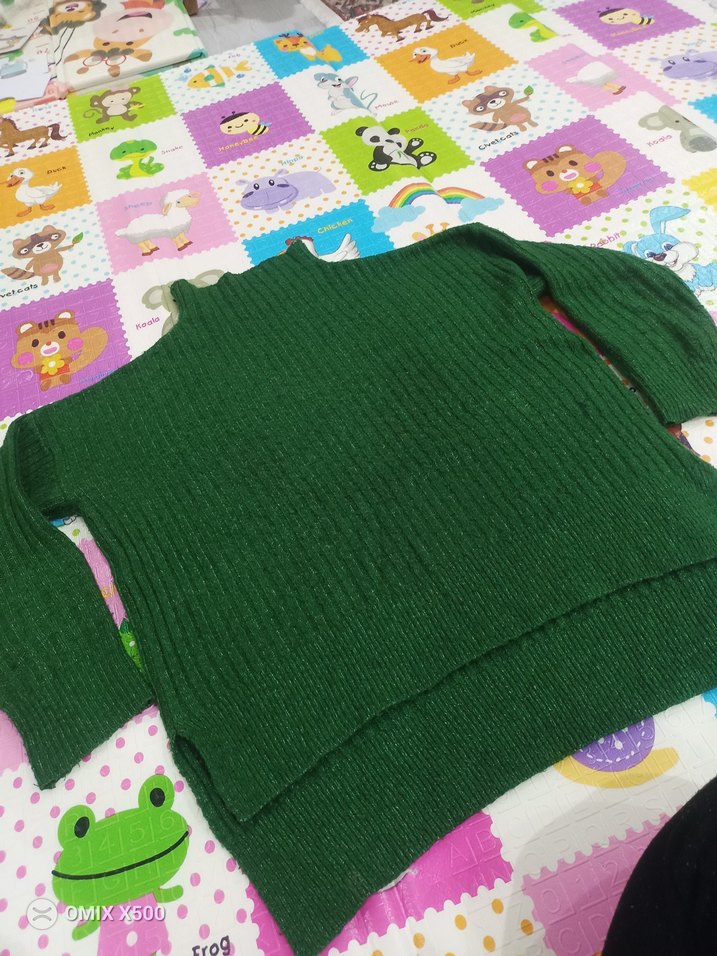 Yeşil renkli, boğazlı ve uzun kollu örgü kadın kazak. Rahat ve normal uzunlukta, sade tasarımıyla günlük kullanıma uygundur. diğer ilanlara da bakabilirsiniz uygun fiyat ve kalite için takip edin toplu tekliflere açığım tek ürün için indirim yapamam maalesef