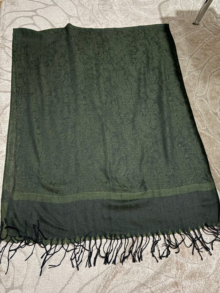 Yumuşak sentetik kumaştan drapeli, yeşil kadın şalı. Püskül detayları ve bohem tarzıyla rahat ve retro bir görünüm sunar.