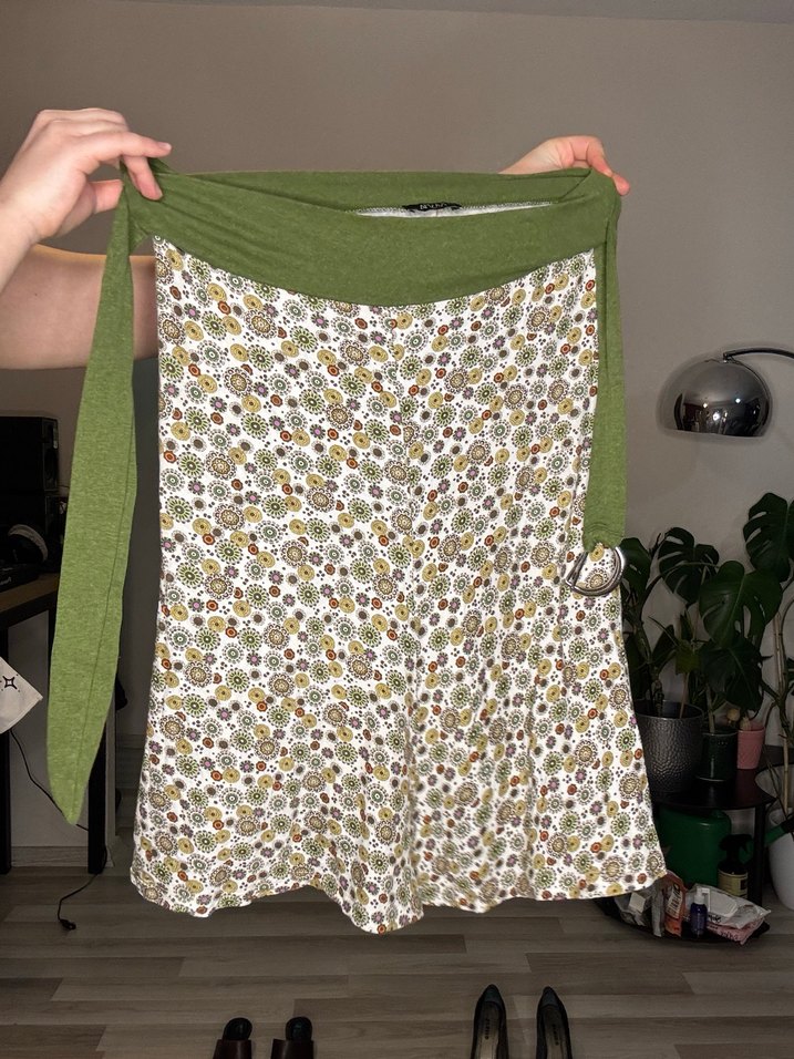 Bu açık yeşil eteği, bol kesim, drapeli tasarım ve çiçek desenine sahip, bohem günlük stil için uygundur. Vintage y2k