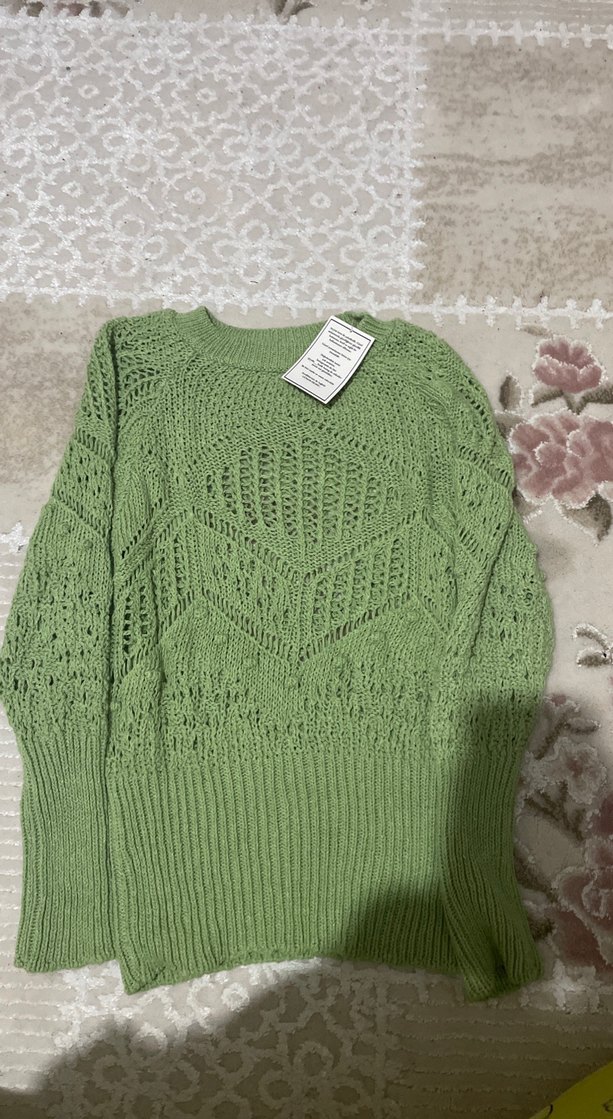 Yeşil renkli, bohem tarzda örgü kadın kazak. Uzun kollu, yuvarlak yakalı ve rahat kesimdir. Günlük kullanıma uygundur.