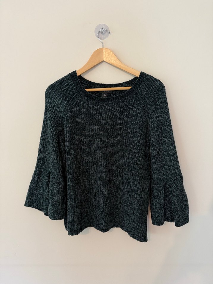 Yeşil renkte, uzun ve volanlı kollara sahip, salaş kesim örgü kadın kazak. Bohem tarzıyla günlük kullanıma uygundur. Amerika’dan gelmişti, şu an internette fiyatı indirimde 15 dolar (normalde 35 dolar)