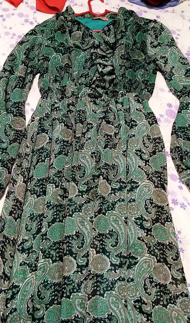 Yeşil Bohem Şifon Uzun Elbise