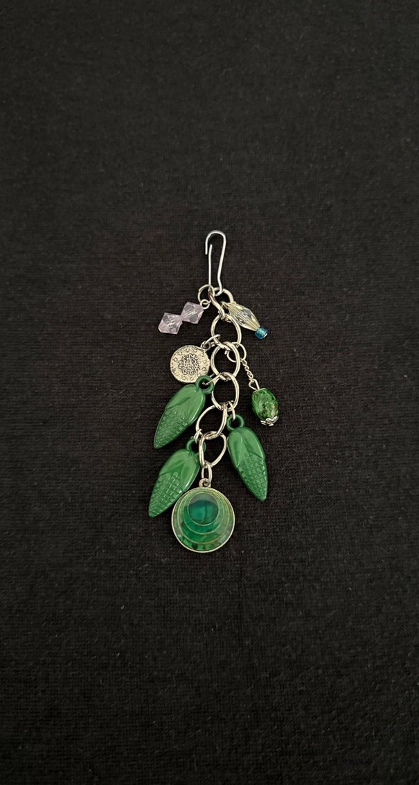 Yeşil yaprak ve renkli boncuk detaylı, zincirli bohem tarzı kadın anahtarlık. Marka temsilidir #