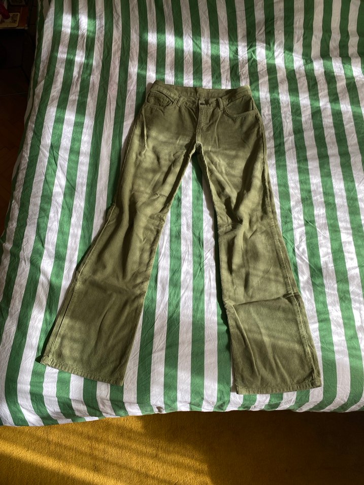 Yeşil Bol Kesim Kadın Fitilli Kadife Pantolon