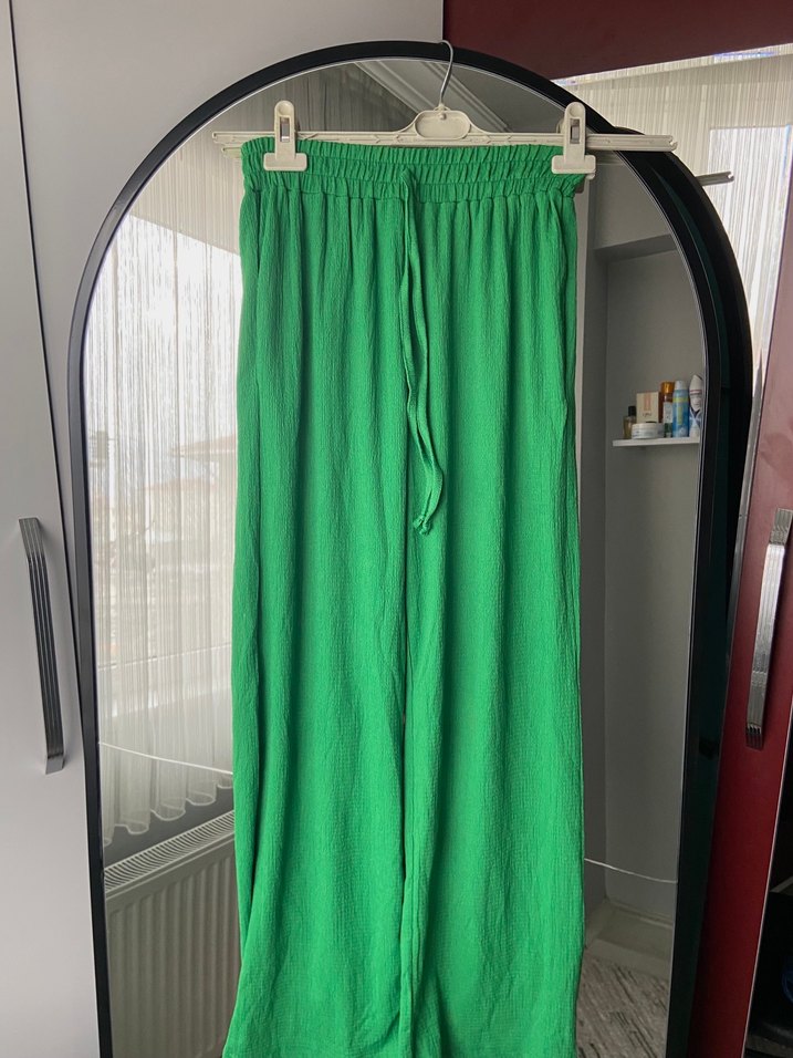 Yeşil Bol Kesim Keten Pantolon