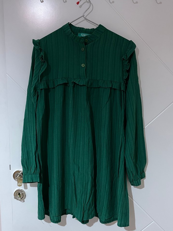 Yeşil Bol Kesim Uzun Kadın Tunik